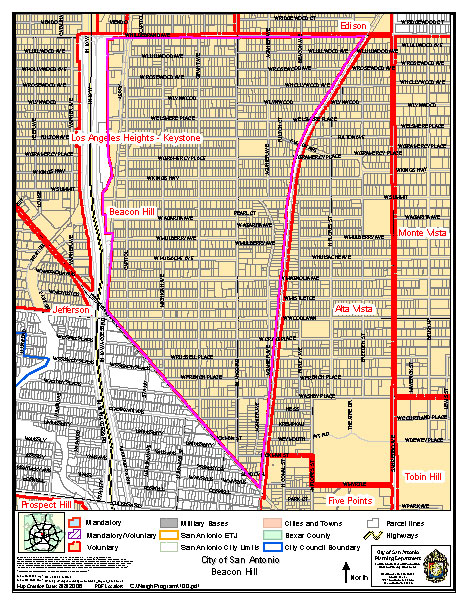 Fredericksburg Road (running NW and SE) forming the southern boundary;